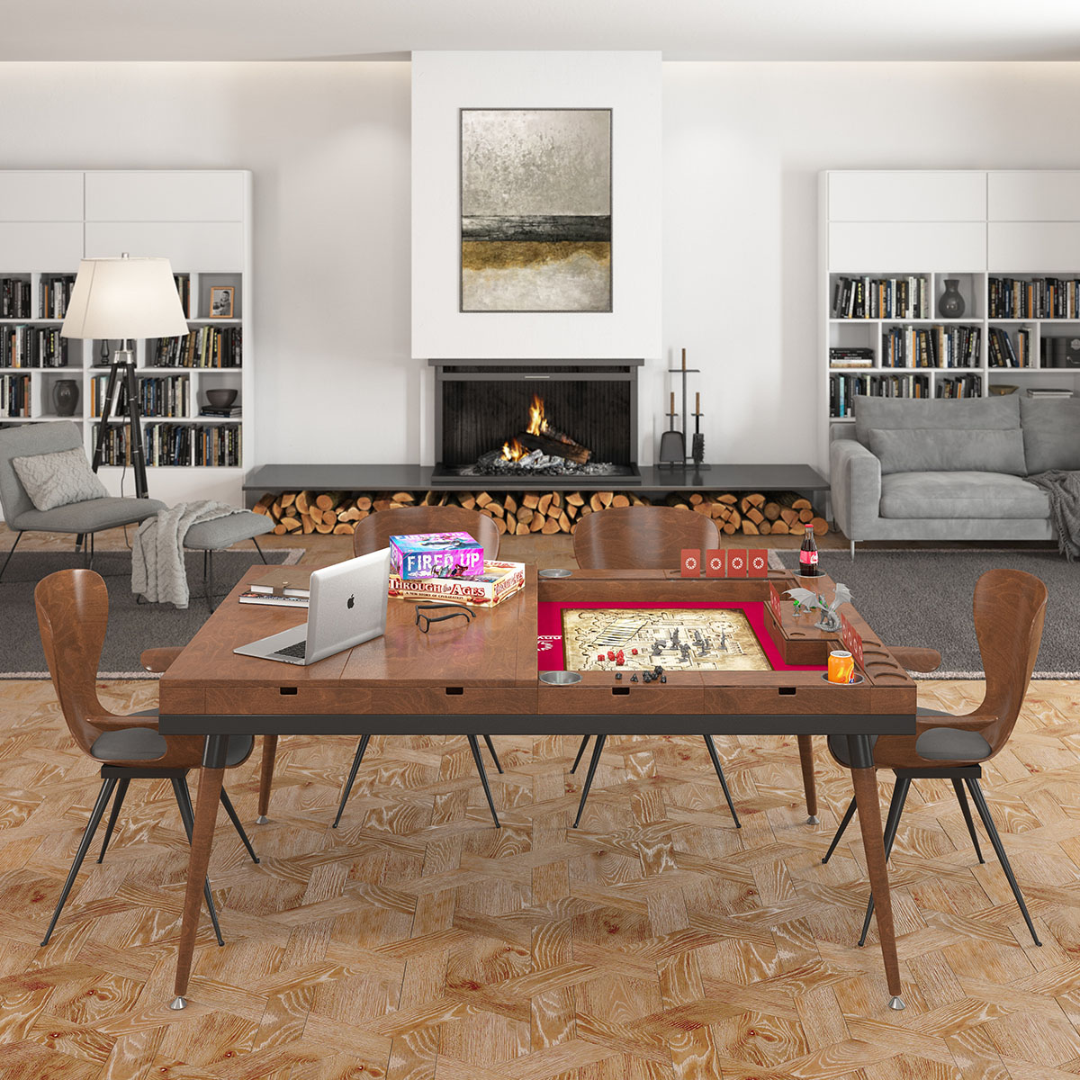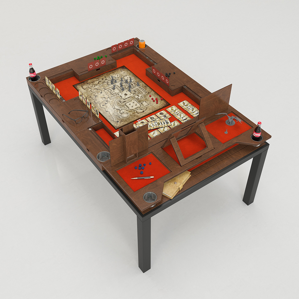The modular design includes options to control and change your DM’s playground, giving them a dedicated screen, a spot to display materials, and nameplates to track your location. A range of modular extras that let each player customize their space are also available as add-ons.